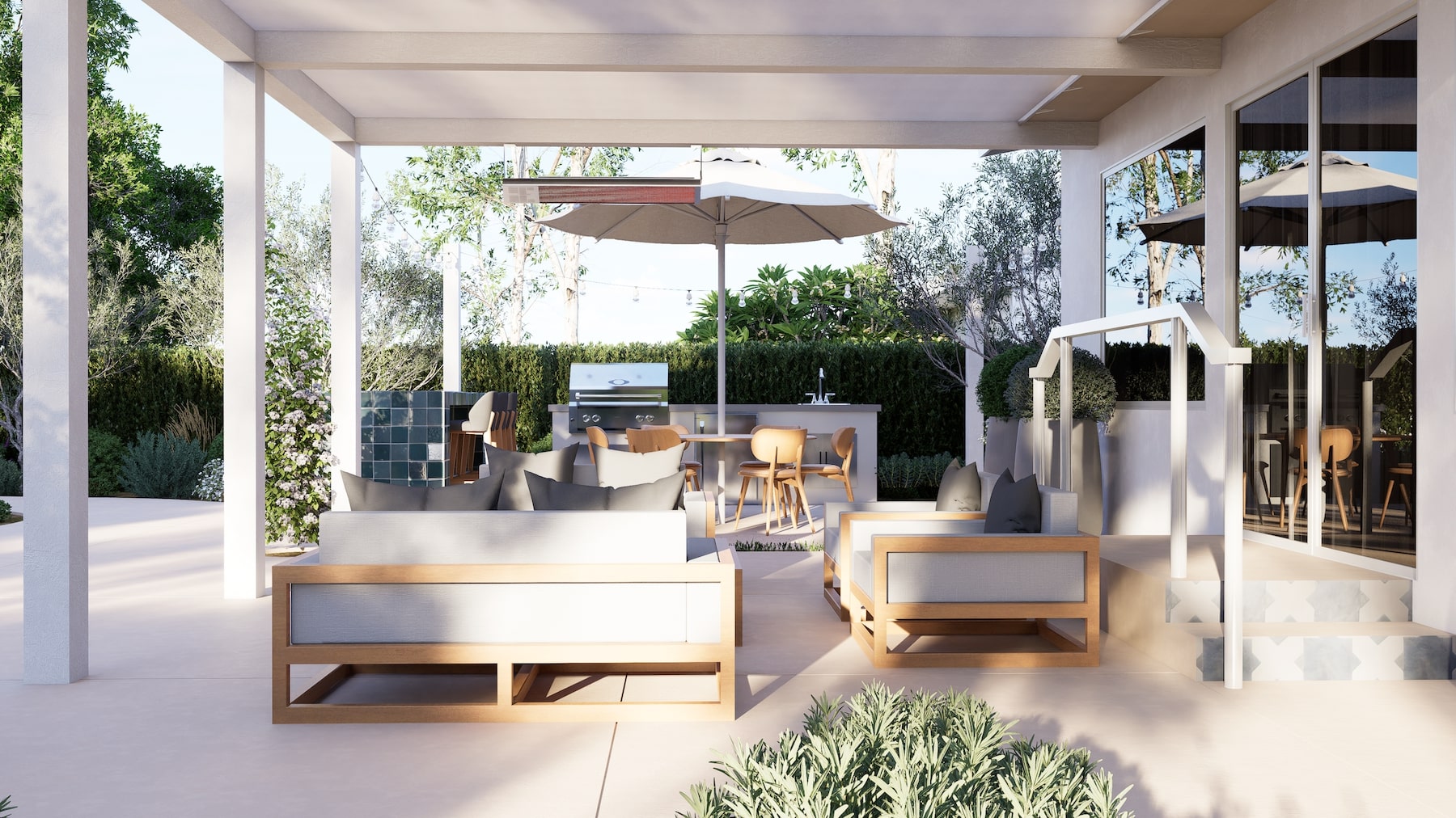 To complete the look and feel of each space, we are able to source and curate premium materials and finishes — stone, outdoor furniture, appliances, and more — chosen for beauty, durability, and harmony with the design. The result is a cohesive outdoor environment that feels effortless and elevated.